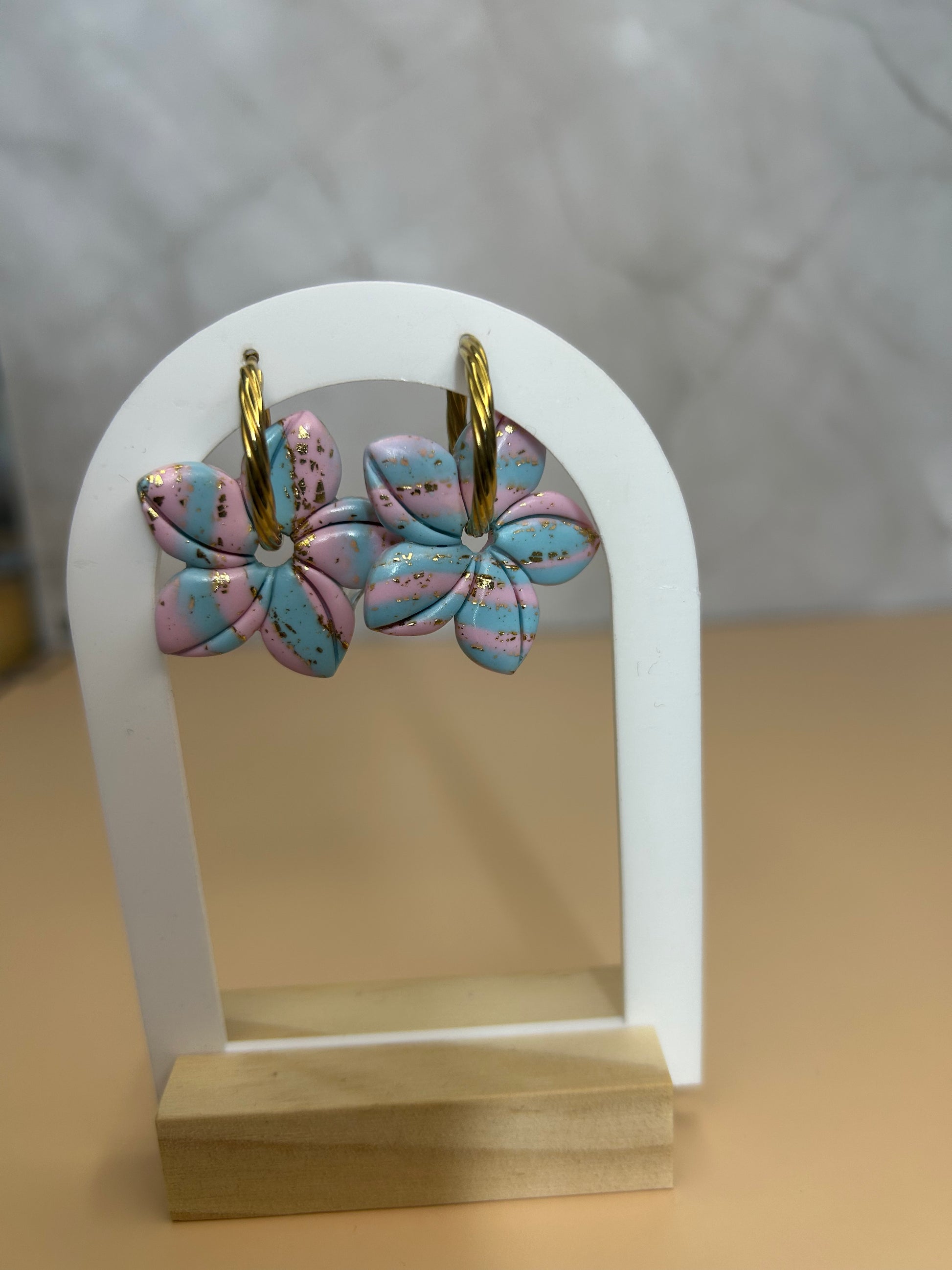 ✨ Boucles d’oreilles aux tons pastel doux avec de délicates touches dorées.