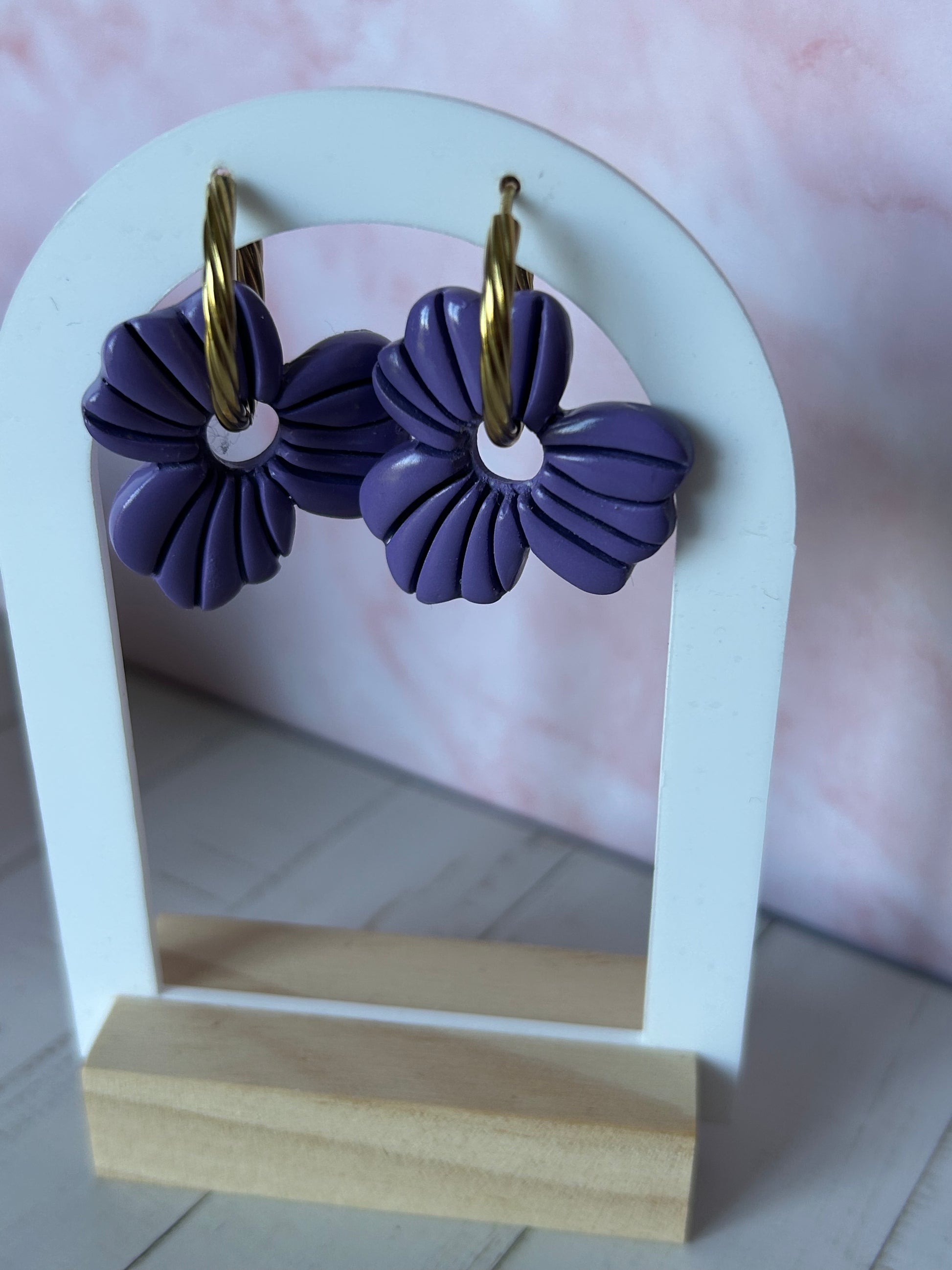 Délicates et lumineuses, ces boucles d’oreilles en forme de petites fleurs lilas sont sublimées par des anneaux dorés torsadés. Un bijou à la fois doux et tendance, parfait pour apporter une touche de fraîcheur et de féminité à toutes vos tenues.